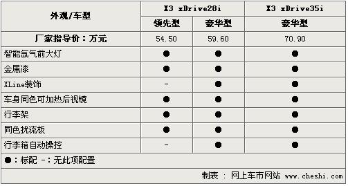 外觀方面差異并不是很大,只是xDrive28i領(lǐng)先型少了XLine裝飾和行李箱自動控制,可見X3的配置基本很平均,并沒有存在著很大的差異,寶馬同樣提供很多選裝件來個性話自己的車輛。天使眼大燈保證了夜晚行車安全。