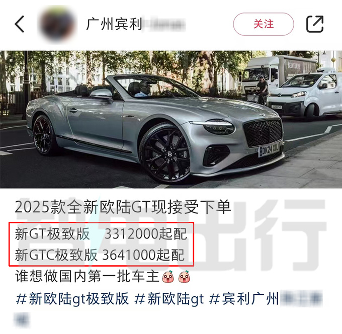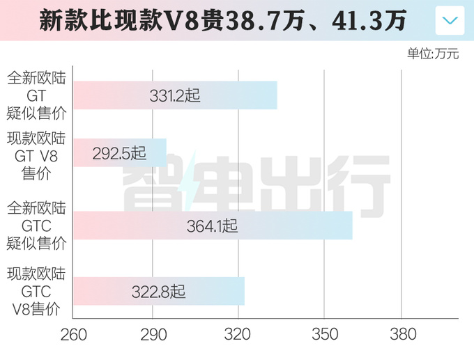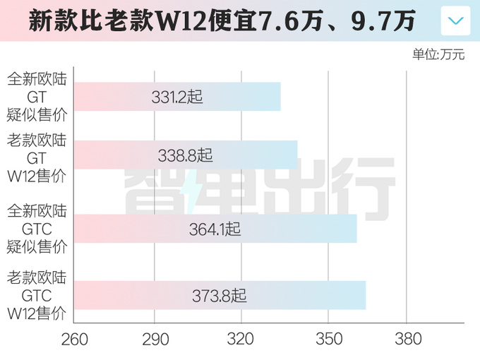 賓利某經銷商銷售員表示,全新歐陸GT極致版已接受下單。2款車型疑似售價分別為331.2萬元起、364.1萬元起,相比現款4.0T汽油版分別貴38.7萬元、41.3萬元。