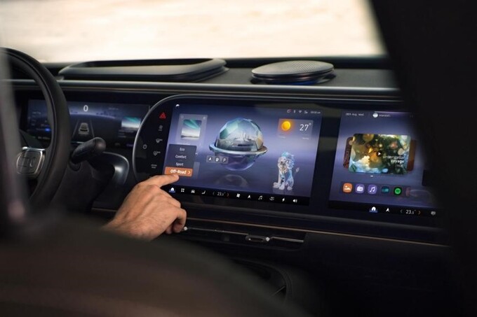全新smart精靈#5配備13英寸AMOLED超清2.5K雙聯屏,以及25.6英寸AR增強型抬頭顯示,最強AMD V2000桌面級高算力芯片賦能,其算力接近驍龍8295的兩倍。全新smart精靈#5還搭載了行業首創的車規級全彩激光投影儀。