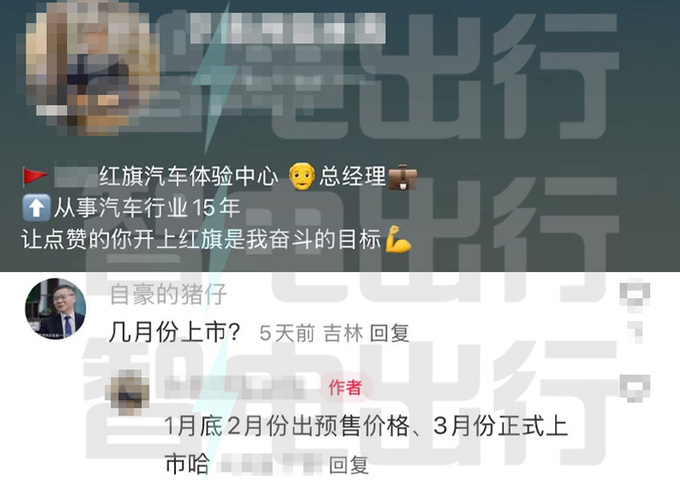 紅旗體驗中心總經(jīng)理透露,新車最快1月底開啟預(yù)售,3月上市。