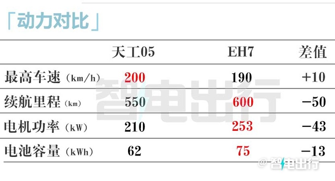 天工05長4.82米,軸距2.9米,比紅旗EH7小(指導(dǎo)價22.98萬起)。新車全系搭載單電機,匹配磷酸鐵鋰電池,CLTC最大續(xù)航750km。