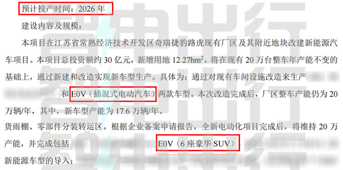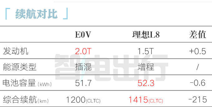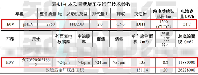 E0V將于明年投產,其搭載的H4J20系列2.0T混動發動機已經成功點火,預計將在今年量產,或將率先在捷途縱橫系列車型上使用。新車配備51.7kWh電池組,CLTC工況綜合續航1200km,整備質量2750kg。