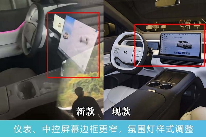 實拍來看,新G6車內配備全液晶儀表、窄邊框中控屏、全新氛圍燈帶、雙層隔音玻璃、手機無線快充、智駕小藍燈。據悉新車還將升級前排座椅按摩、副駕電動腰托、后排座椅加熱、電容方向盤、高通8295芯片、流媒體后視鏡和仿麂皮車頂等。