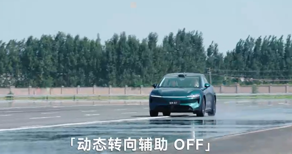 在對開路面全力加速試驗中,智界R7全程保持直線行駛姿態,未出現明顯跑偏跡象。單側濕滑對開路面行駛時,DSA動態轉向輔助可提供最長10 秒的方向盤穩定支持,所以智界R7在面對惡劣路況需要緊急制動,也能保持直線軌跡,避免跑偏風險。