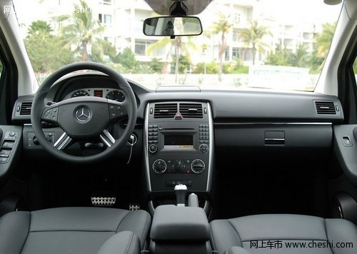 奔馳B級車的內飾整體感覺簡潔實用,上深下淺雙色設計,搭配中控臺邊緣與門板音響處的鍍鉻飾條,映襯出時尚之感。控制面板與前后車門等處還采用了木質裝飾,營造出豪華的氣氛。高質感、注重細節、寬敞的車內空間,始終是奔馳堅持與追求的目標。透過車室頗具質感的配色與用料、內裝材質所呈現的細膩觸感、大面積玻璃所帶來的明亮感等,都是奔馳B級車的過人之處。較高的坐姿,帶給駕駛者更好的視野與舒適駕乘姿勢,同時座椅的寬度以及支持力,為激勵駕駛提供先天的安全保障。個性十足的百葉窗式全景天窗也只出現在B200時尚型上面。與傳統的全景天窗不同,奔馳B級的天窗由5塊玻璃組成,打開天窗時,第一塊玻璃向上翹起,后面4塊向后滑動疊在一起,能獲得最大限度的透光效果。